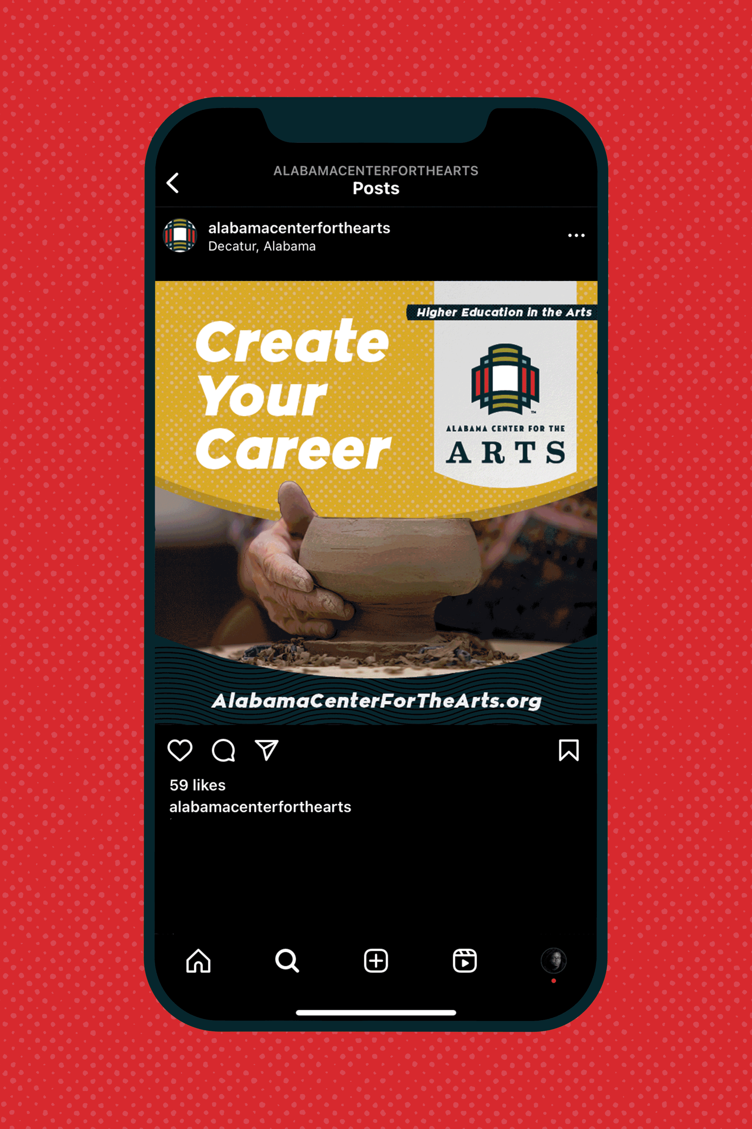 Advertising campaign designed for the Alabama Center for the Arts, a partnership between Calhoun Community College and Athens State University. This campaign included a series of rotating digital ads for billboards across the Huntsville metro as well as targeted Google and social media ads for users interested in higher education in fine arts throughout North Alabama.